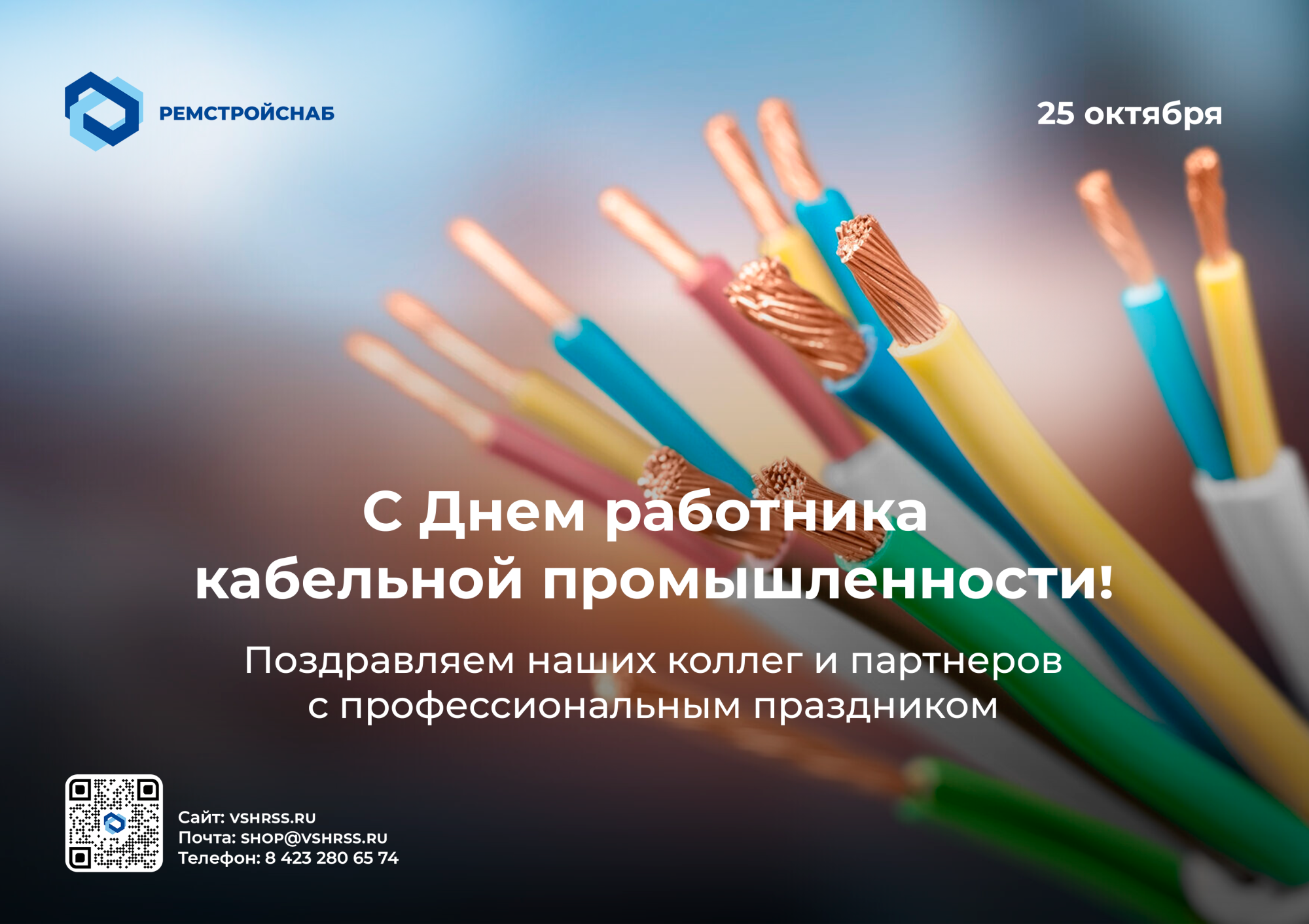 Уважаемые работники кабельной промышленности! От лица компании ВШ-РемСтройСнаб поздравляем вас с профессиональным праздником! Ваш труд является основой современной инфраструктуры и связи. Желаем вам новых технологических решений, надежных соединений и дальнейшего развития вашей важной отрасли.